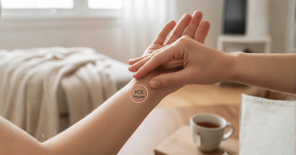 Pregnancy nausea is driven by hormonal changes and heightened nervous system sensitivity. PC6 is safe and effective when applied correctly.
