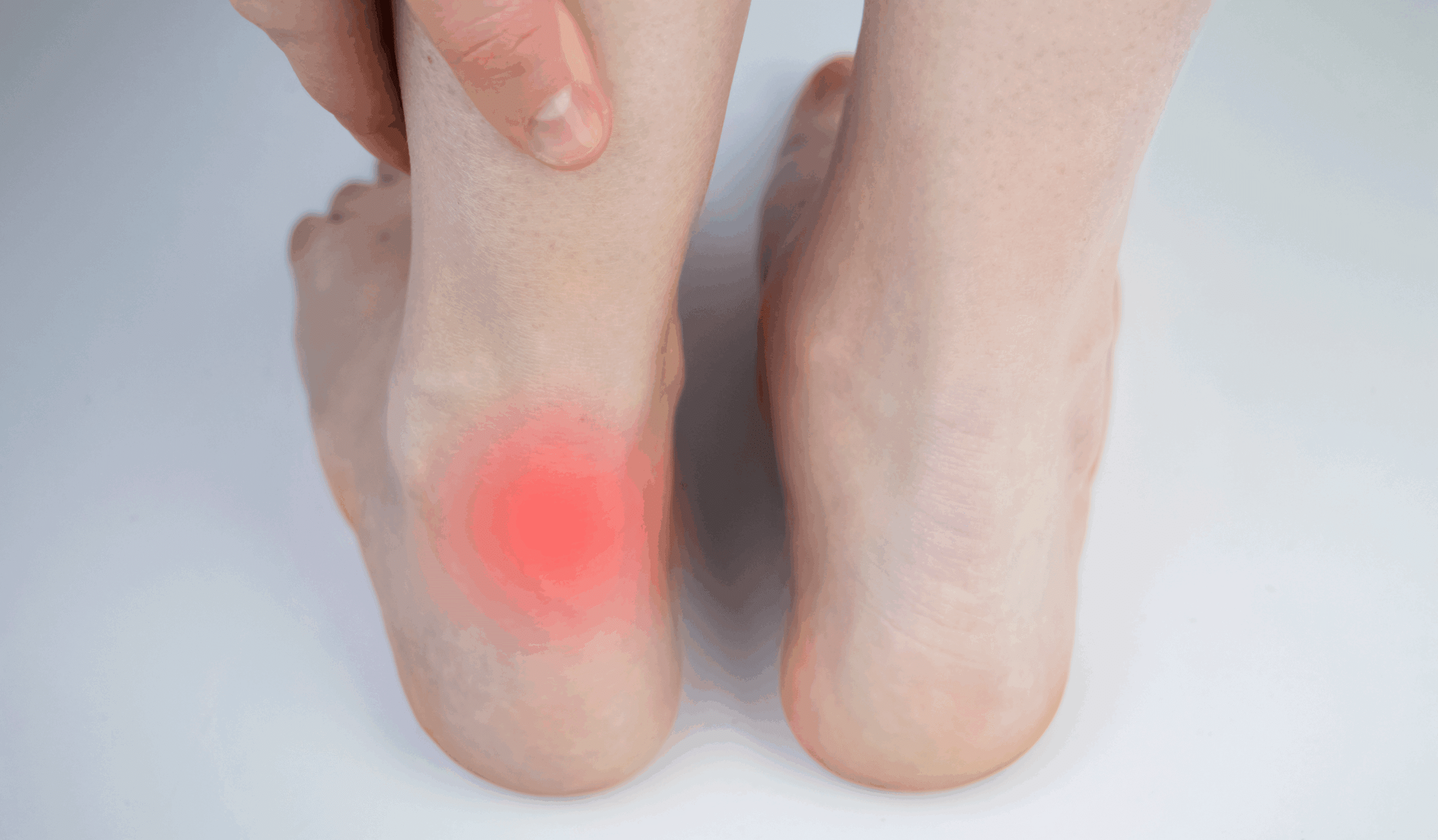 Tenderness: Touching the affected area can be painful. Pressing on the tendon near the heel often reveals areas of tenderness or sensitivity.