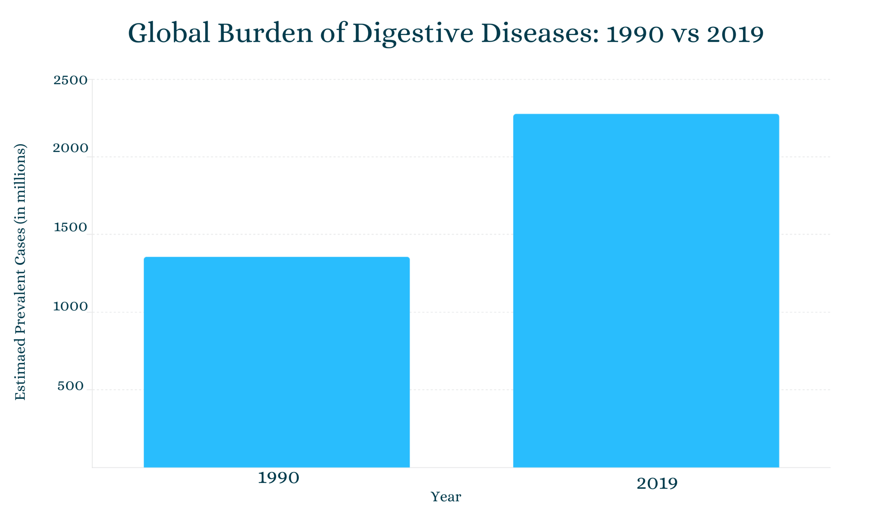 The prevalence of digestive diseases has shown a staggering rise globally, with an estimated 2.28 billion cases reported in 2019—a dramatic 67.87% increase since 1990.Â
