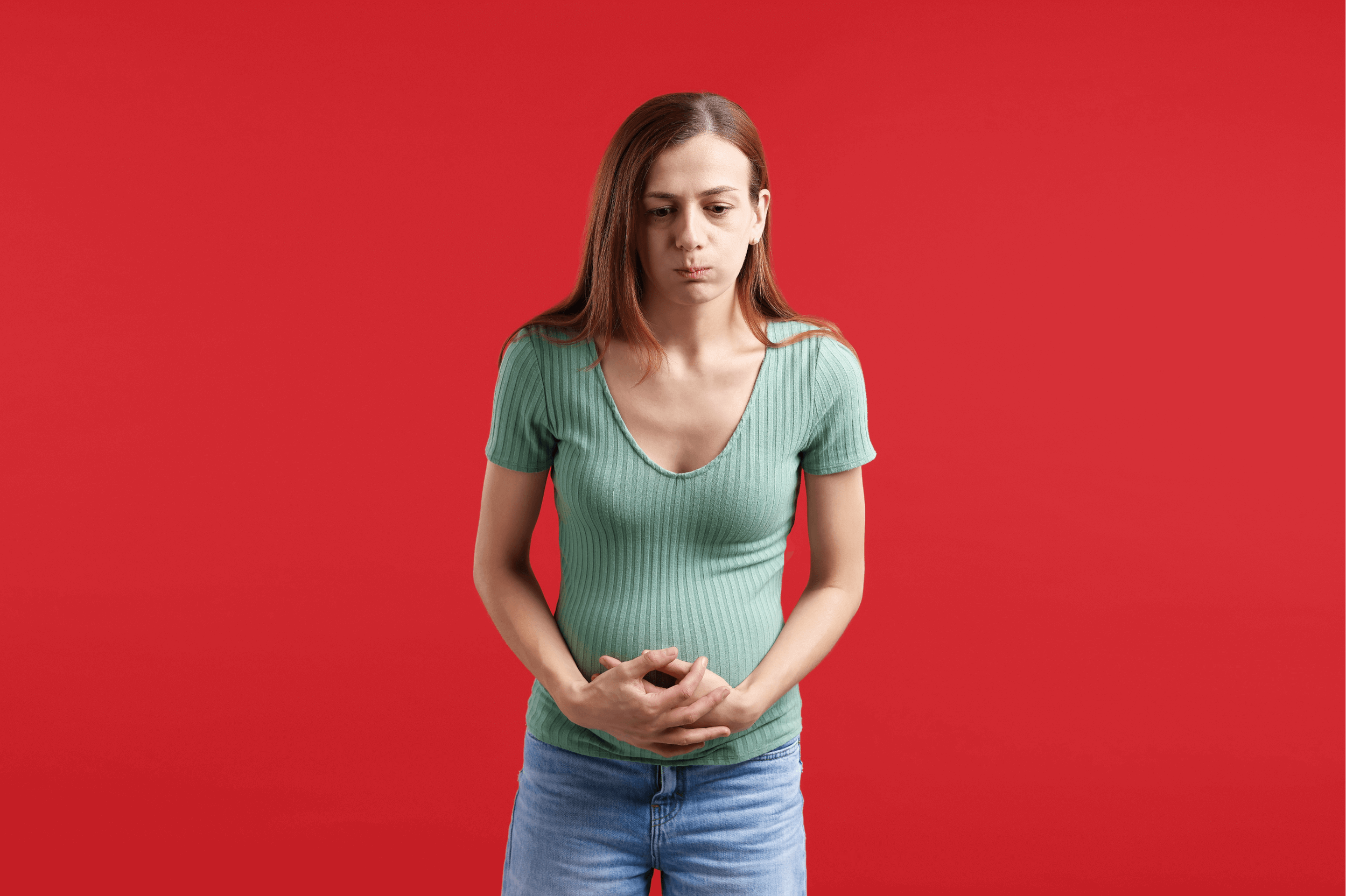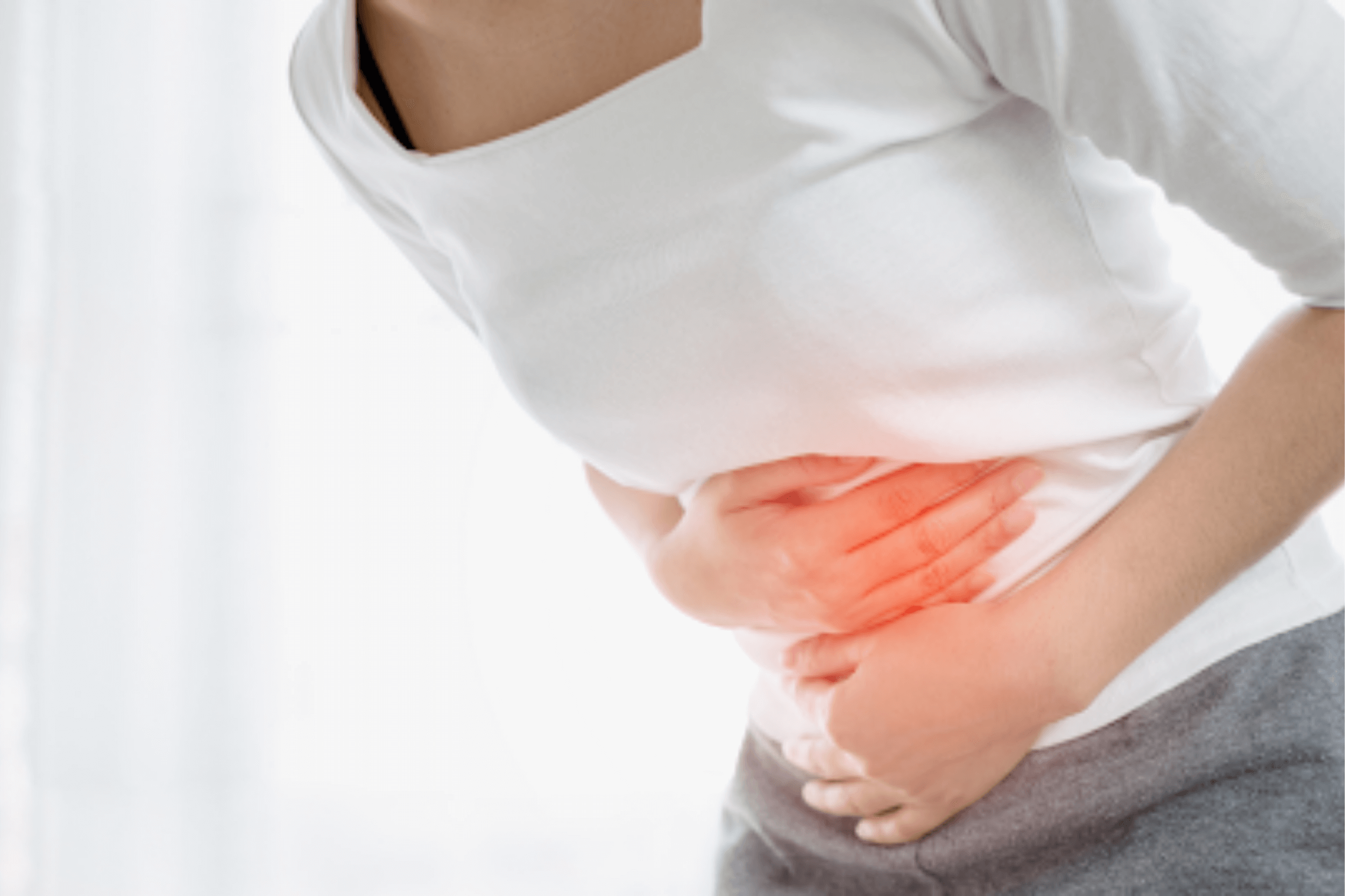 Hands on stomach with pain highlight, PMS