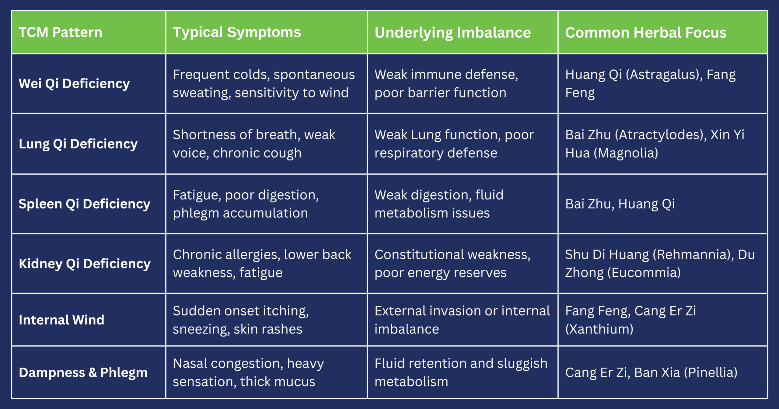 These patterns often overlap, and symptoms like allergic rhinitis, eczema, or food sensitivities may point to different underlying imbalances. This individualized lens allows for tailored treatment-one of TCM’s greatest strengths.